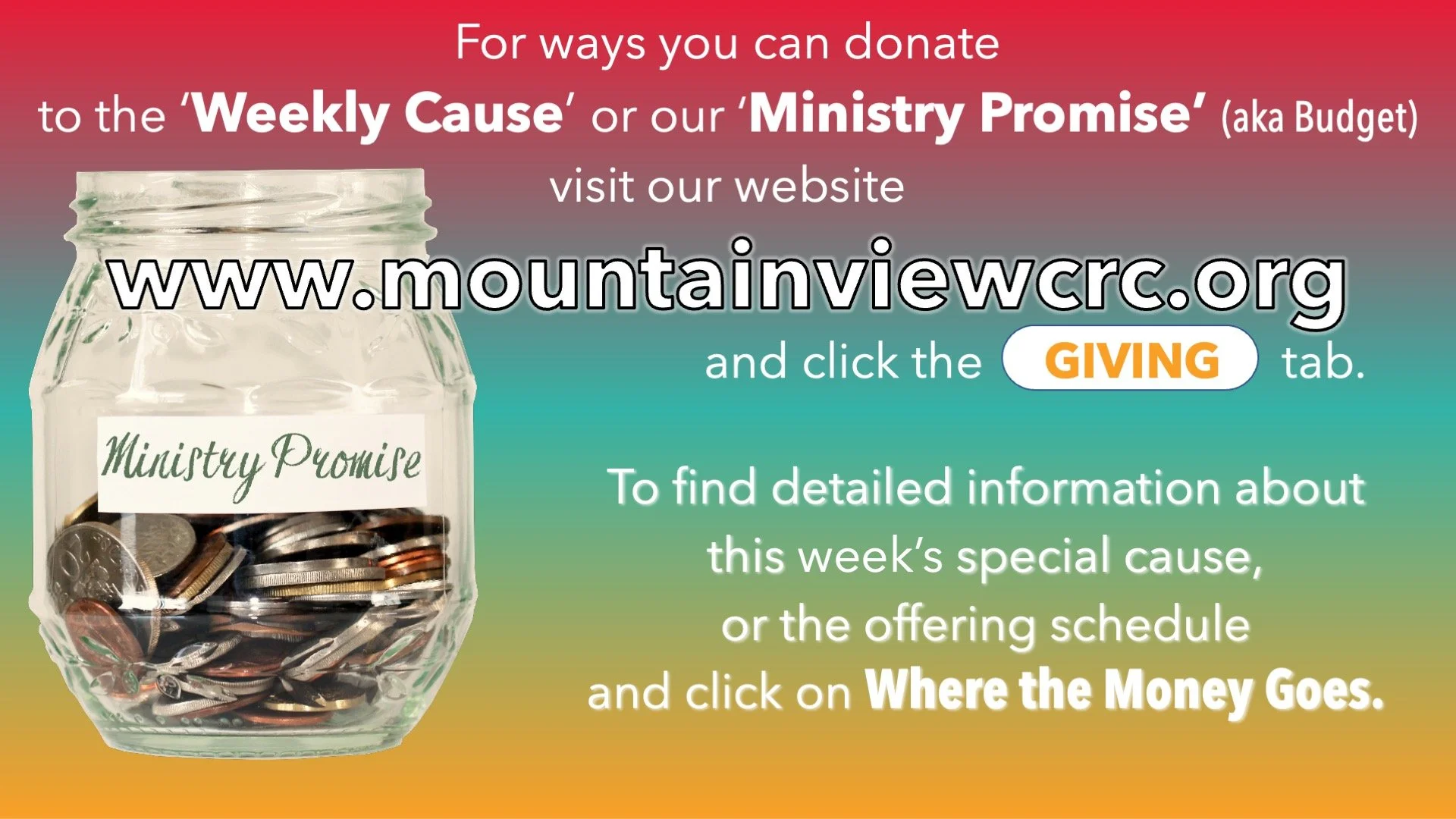 Sunday’s offerings are for our Ministry Promise (a.k.a. Budget) AND for...
