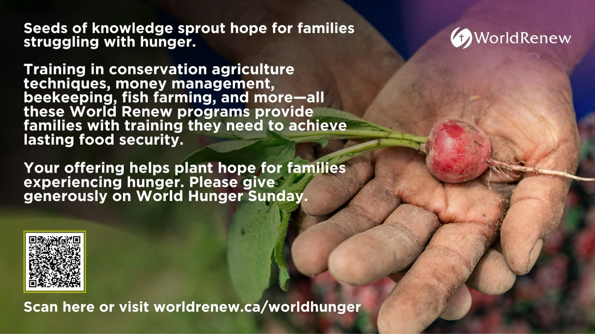 Plant Hope for Families in Food Crisis - In two weeks, you are invited to join World Renew to learn how, through your gifts, you can help plant hope for families in food crisis. World Renew works with Christian churches and organizations to provide the training and tools communities need to overcome food insecurity for generations. To learn more, visit: worldrenew.ca/worldhunger