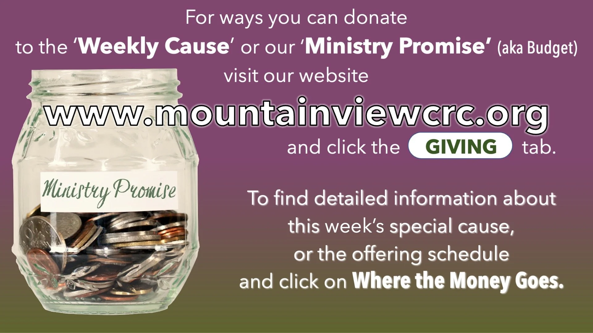 Sunday’s offerings are for our Ministry Promise (a.k.a. Budget) AND for...