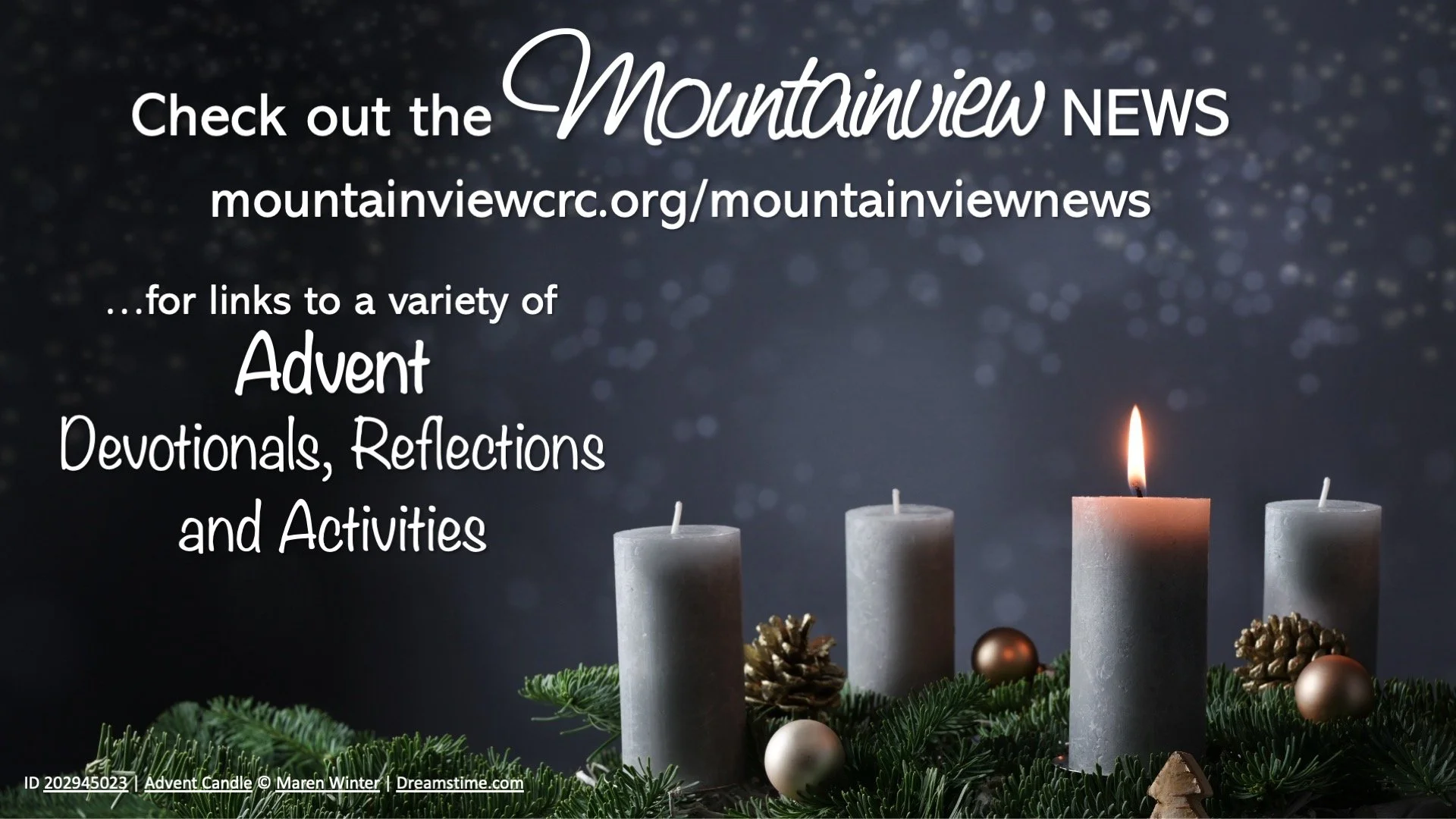 Right Now Media has Advent (& Christmas) Studies and devotionals for adults, kids and families. Check out our Mountainview Page for some ideas or search under “Advent” and “Christmas”.