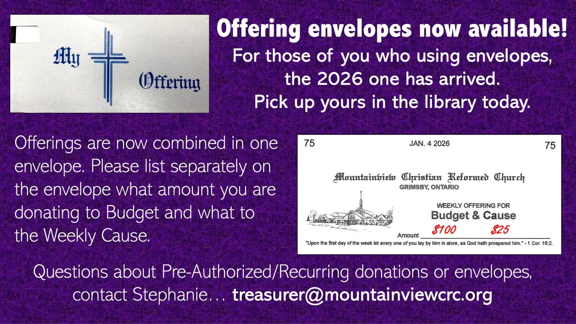 December 21st A.M. – Benevolence - Refugee Sponsorship: Mountainview has a long history of sponsoring refugee families. World Renew has submitted paperwork to Immigration Canada on behalf of the Deacons to sponsor the Said family, originally from Somalia. Their family was forced to flee to Uganda after immediate family members were murdered, and their farm was taken. Our goal is to relocate the Said family out of the refugee camp and into a new life in Canada. Immigration Canada will be interviewing the Said family in the spring. Mountainview must provide proof that all required funds for sponsorship (approximately $75,000) is held in trust when the interview takes place (the funds will be paid out for resettlement over a two-year period). Approximately $8,000.00 has been raised to date. We are confident that our love for God and our neighbour will move and inspire us to raise the remaining funds needed to begin the work that will change the life of the Said family. The Deacons of Mountainview and the Said family thank you for your generous support