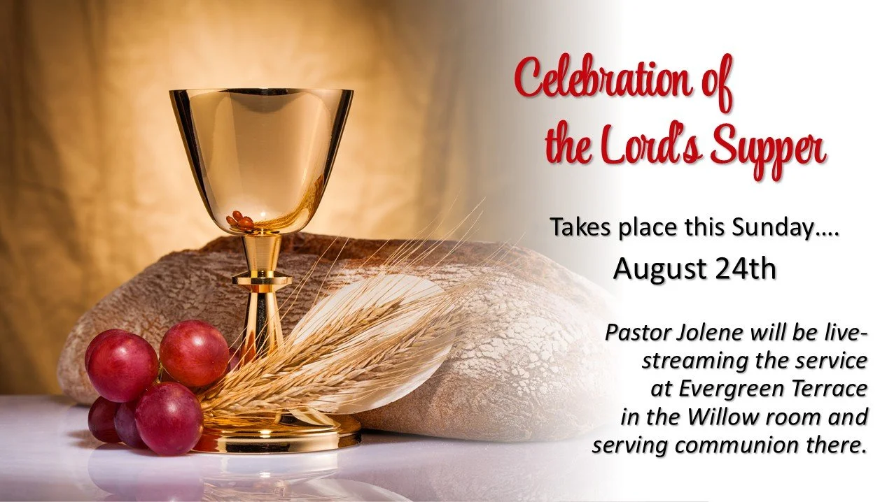 This week's psalm gives a variety of images of safety that illustrate God's presence and care. These are wonderful hopeful pictures that seem to ignore the realities of tripping and falling which most of us experience. What is that about? This morning we will also partake of the Lord’s Supper.