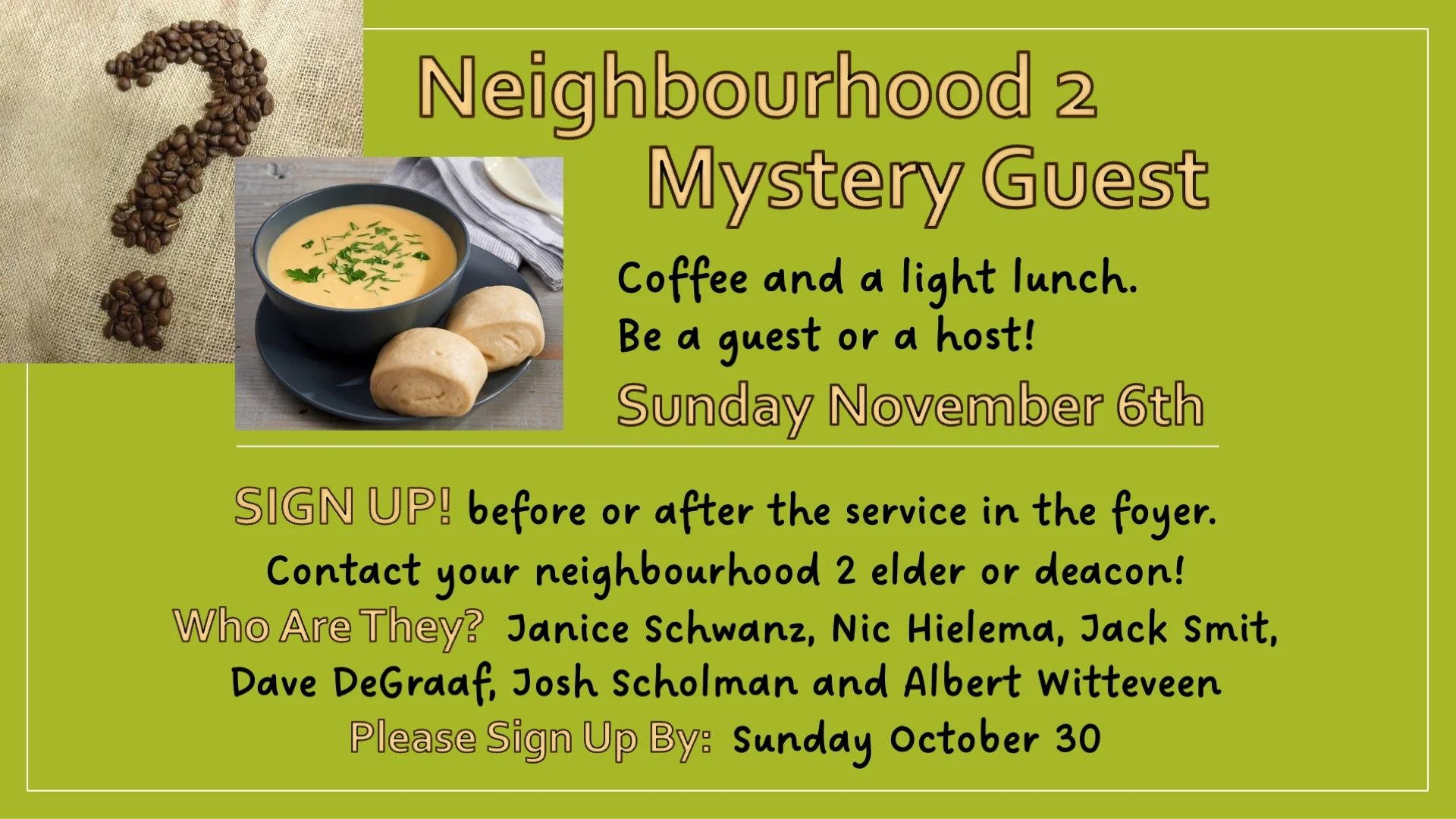 UPCOMING OFFERING: November 6th A.M. – World Renew: World Hunger: Conflict, drought, and the effects of COVID-19 have intensified the global hunger crisis. Over 1.6 billion people around the world are hungry. God promises in Scripture to fill the hungry with good things and invites us to join in that holy work. In 2 weeks, we will be observing World Hunger Sunday and taking a collection on behalf of World Renew’s work with our hungry brothers and sisters worldwide. Pick up your World Hunger Campaign devotionals today and spend some time thinking about what it means to hunger for good in our lives, our communities, and around the world. If you have children in your household, make sure to go online and download some special activities just for them at worldrenew.ca/ WorldHungerChurches.