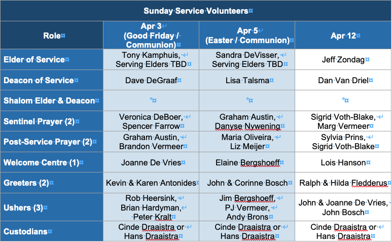 Elder/Deacon: Tony Kamphuis