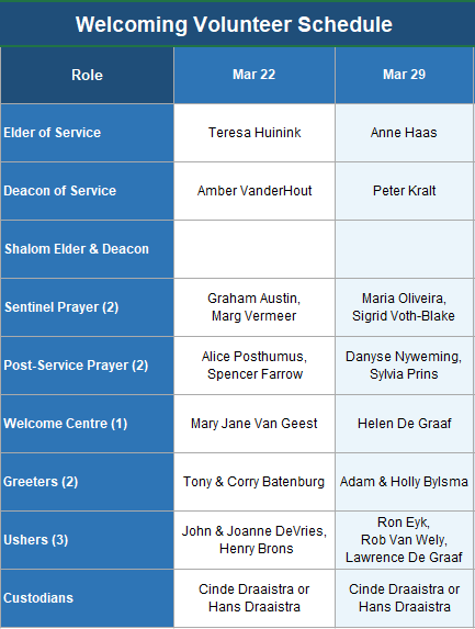 Service Volunteers - Sunday March 22nd, 2026